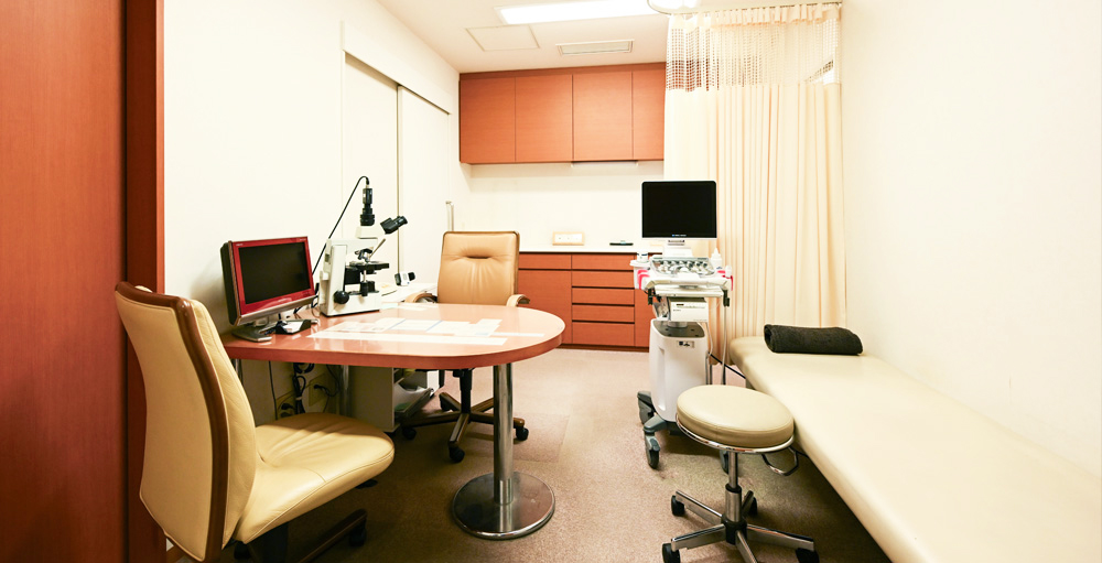 女性が安心して来院できるよう、男性の同伴はご遠慮いただいております。診察室は個室となっており、会話内容が外に聞こえることはありません。安心して本音で悩みを相談できるような落ち着いた雰囲気づくりを心がけております。